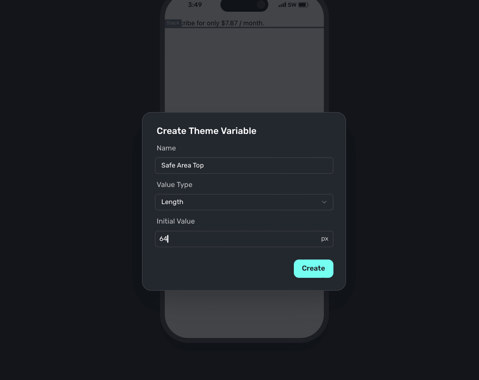 By default, Superwall has all of your theme apply to both light and dark mode. But, if you click the + icon you can add dark mode specific values, too: